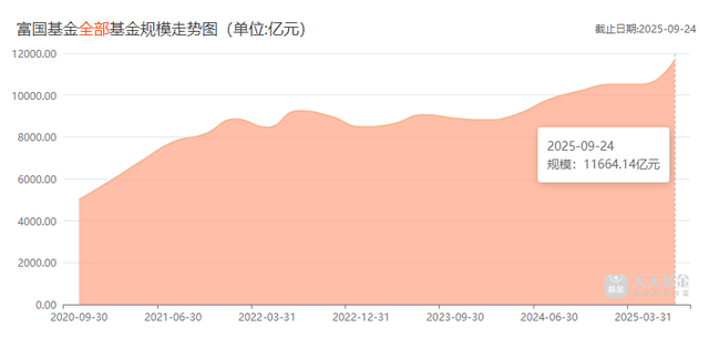 天天基金网显示,截至2025年9月24日,富国基金总规模11664.14亿元。相比年初的10511.01亿元增超1500亿元。