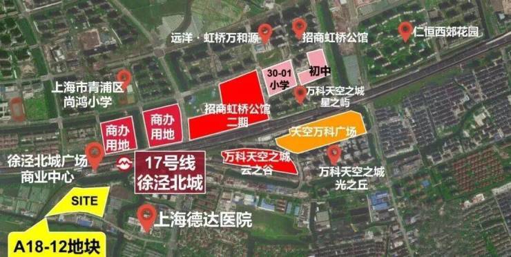 项目地块北侧紧邻17号线站可达徐盈路天空万科广场,2站至蟠龙古镇商业区,3站直达国家会展中心,4站即达虹桥枢纽。
