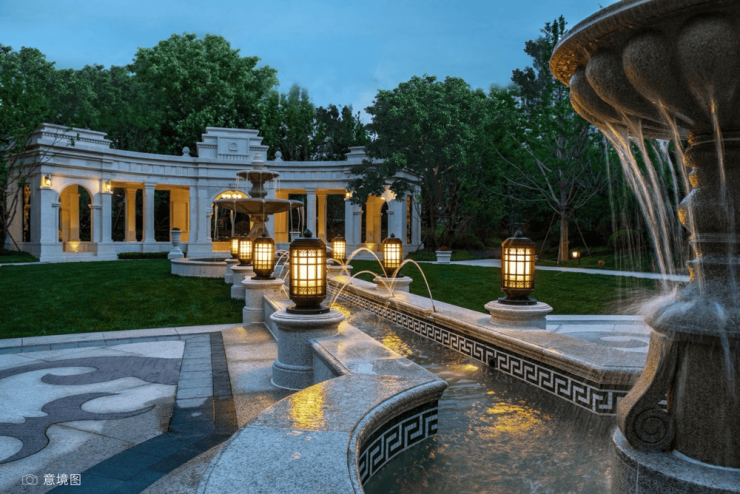 借鉴美第奇家族造园哲学,融合江畔立体花园设计。高层设置五大主题庭院,低密区沿南北轴线布局双景观廊道,重构现代园林体验。