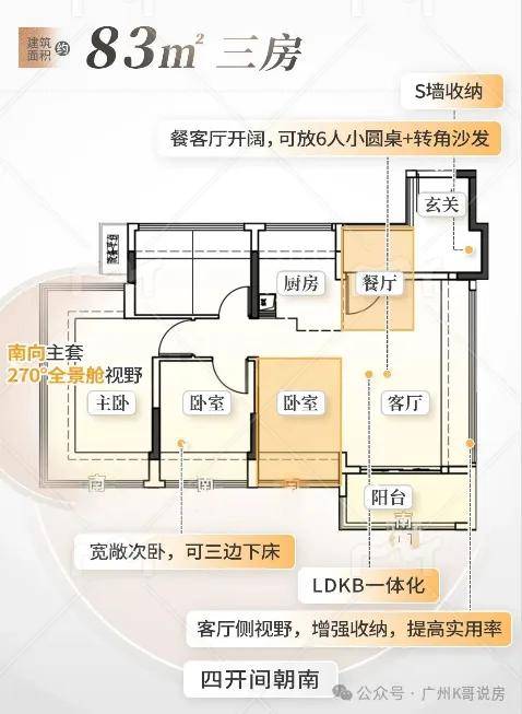 由于是单边位,预测套内会比84平的户型更大。这是因为,新规收紧后,高得房率的部分象征,也能继续保留。