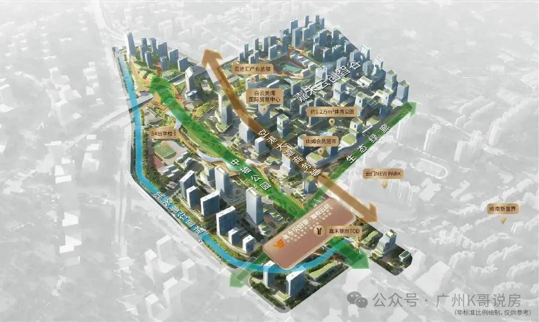 将采用“水岸共生”理念,以白海面涌为生态主轴,构建滨水慢行廊道。同时沿嘉禾望岗上盖设施打造景观化中轴公园,塑造片区创意活力。(非项目配建,以政府官方公示为准)