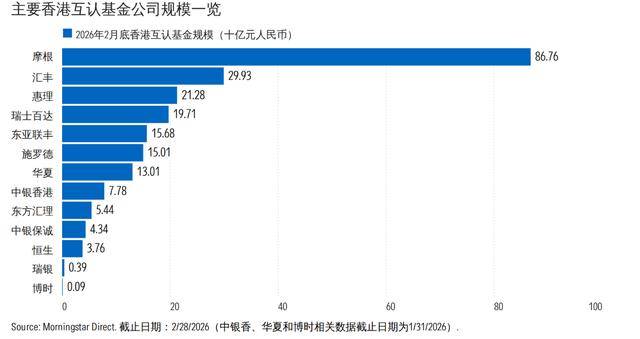 从产品到机构,资金也在加快向少数平台集中。年初至今,瑞士百达、摩根、东亚联丰等机构旗下产品维持净流入,汇丰则因债券产品持续失血,整体表现靠后。不过,短期资金流向的变化尚未迅速改写行业格局。截至2月末,摩根仍以867.6亿元互认基金资产规模、超过40%的市场份额居首,汇丰、惠理分列其后。
