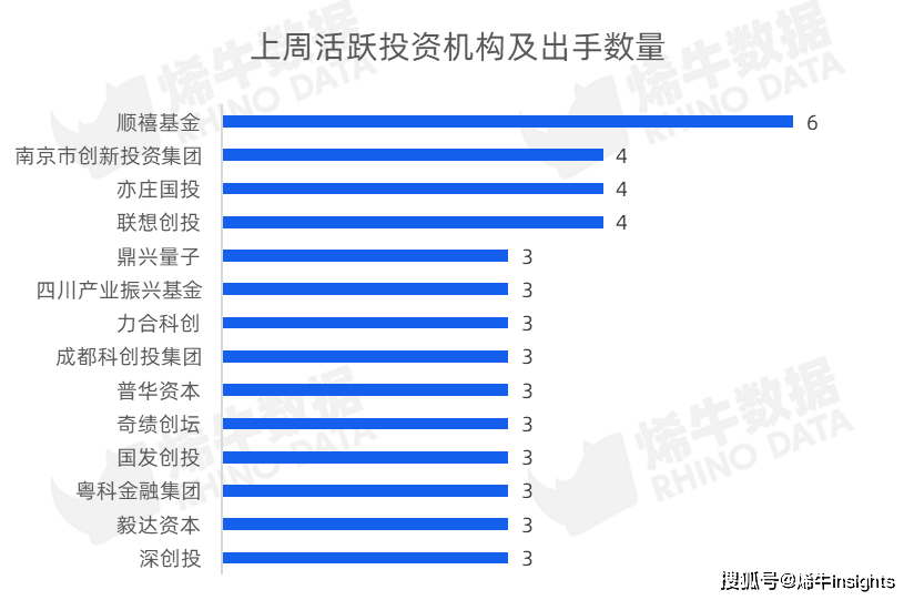 其中,最活跃的机构为顺禧基金,出手6次;南京市创新投资集团、亦庄国投、联想创投出手4次,深创投等10家机构出手3次。