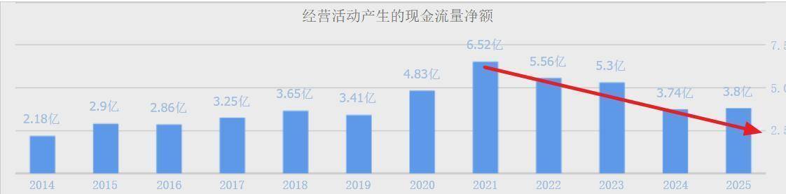 当然,并非所有的数据都黯淡无光。有一个关键指标,元祖股份的表现一直可圈可点,那就是经营现金流。无论利润如何波动,公司每年通过经营活动获得的现金净额始终为正。这说明元祖股份的产品在市场上仍然具有竞争力,能够卖出去,也能收回钱,没有陷入“纸上富贵”的困境。当然,随着营收规模的缩小,现金流的总量也随之减少。