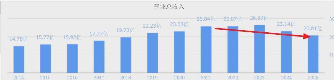 再看增长势头。元祖股份的营业收入,最近四年增长缓慢,几乎停滞不前。到了2024年和2025年,营收数字更是出现了负增长,这表明公司的增长引擎似乎已经熄火。