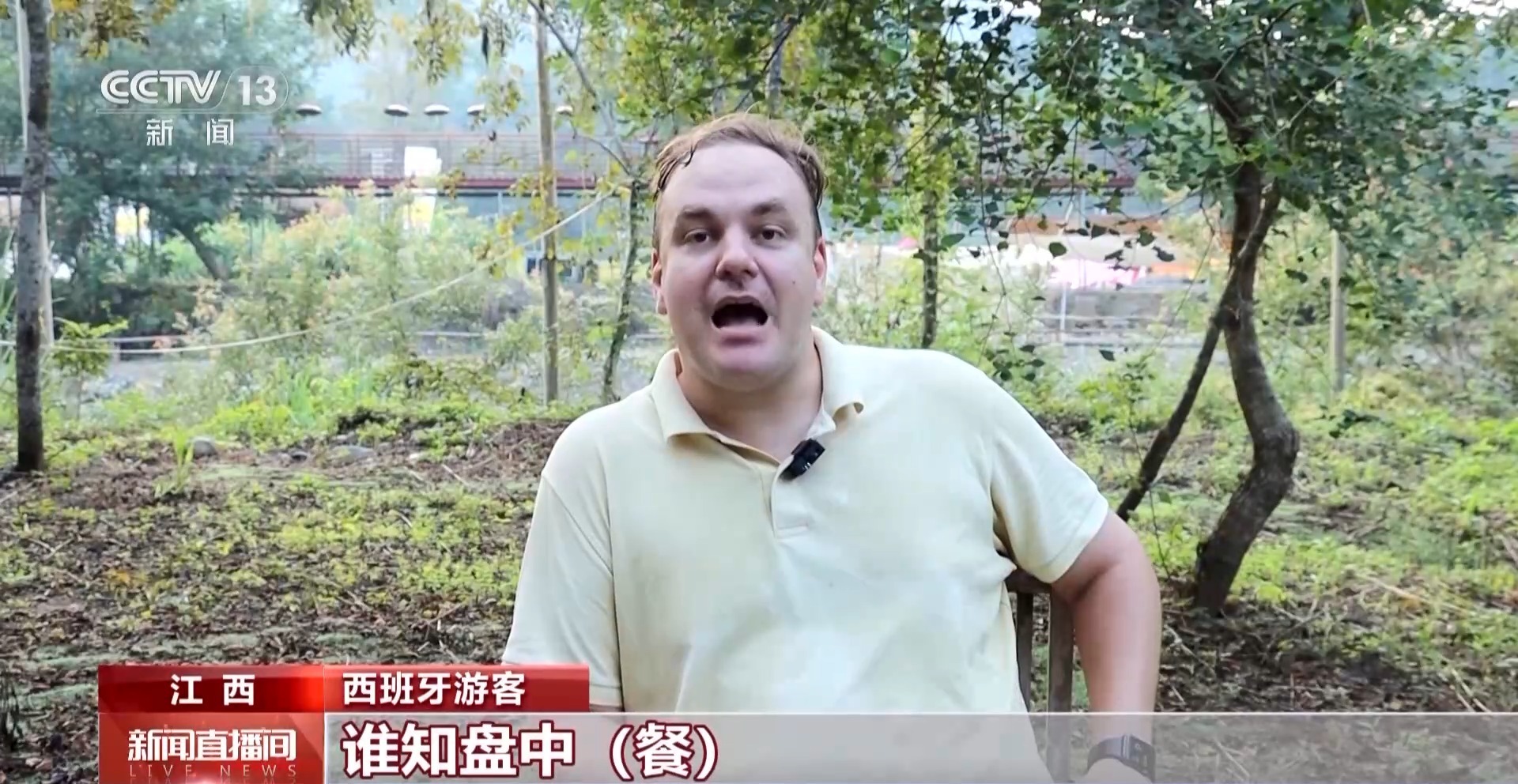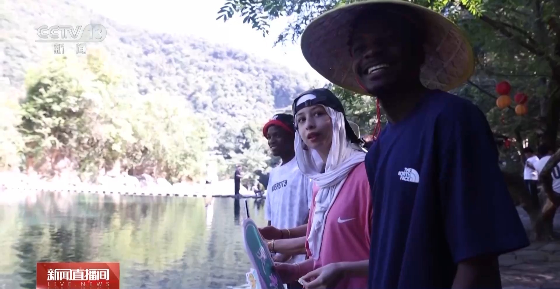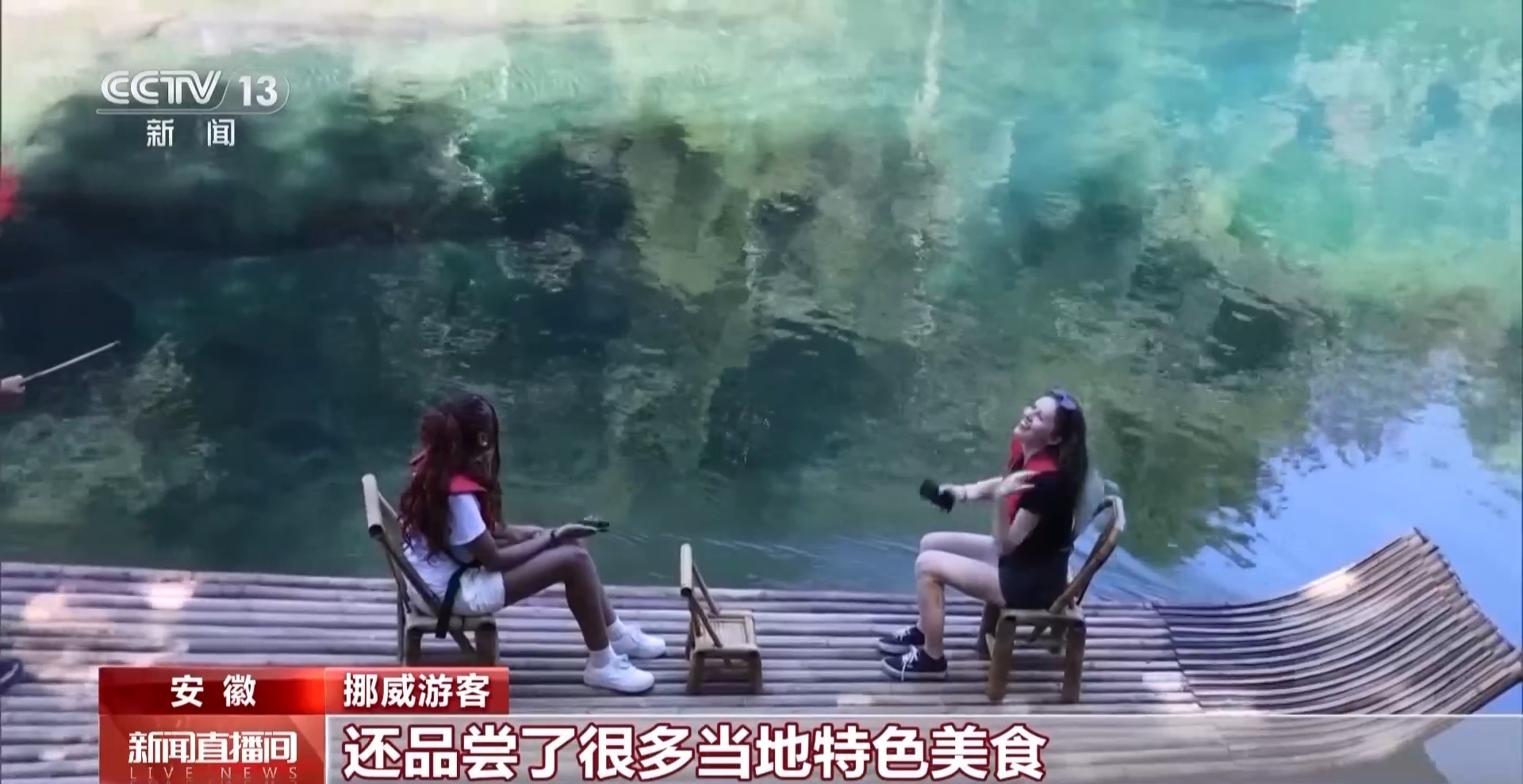 挪威游客:第一天我们去漂流,还品尝了很多当地特色美食。今天我们来村里游玩,因为我们希望真正融入中国。