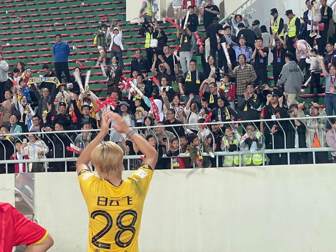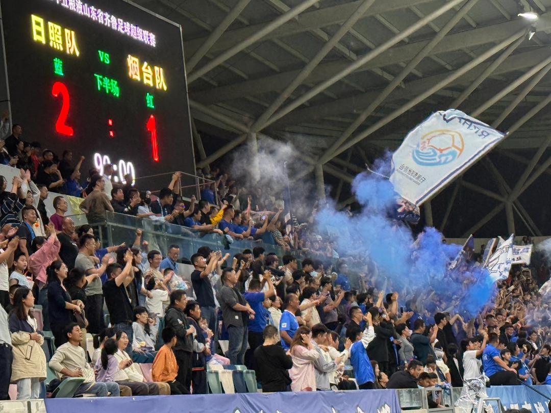 要说赢下比赛,主场球迷功不可没,烟台球迷更不甘示弱。山对山,海对海!球场两边山呼海啸的应援声响彻日照国际足球中心体育场。