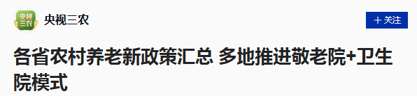 央视新闻客户端推出《各省农村养老新政策汇总 多地推进敬老院+卫生院模式》,其中报道吉林省持续健全县、乡、村三级养老服务网络,完善居家、社区、机构养老协同联动机制,强化养老机构分类管理,提升日间照料、康复护理等服务供给,稳妥推进助老餐厅建设。同步健全农村低保标准动态调整机制,完善农村老年人、留守妇女儿童及残疾人关爱服务体系,推进特困人员救助供养和临时救助。