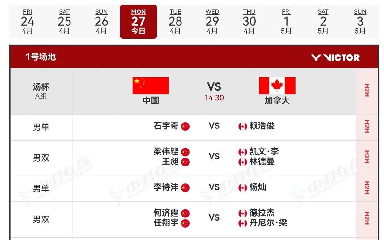 凤凰体育- 凤凰体育直播- APP石宇奇激战!羽毛球汤姆斯杯今天(427)赛程中国VS加拿大CCTV-5直播